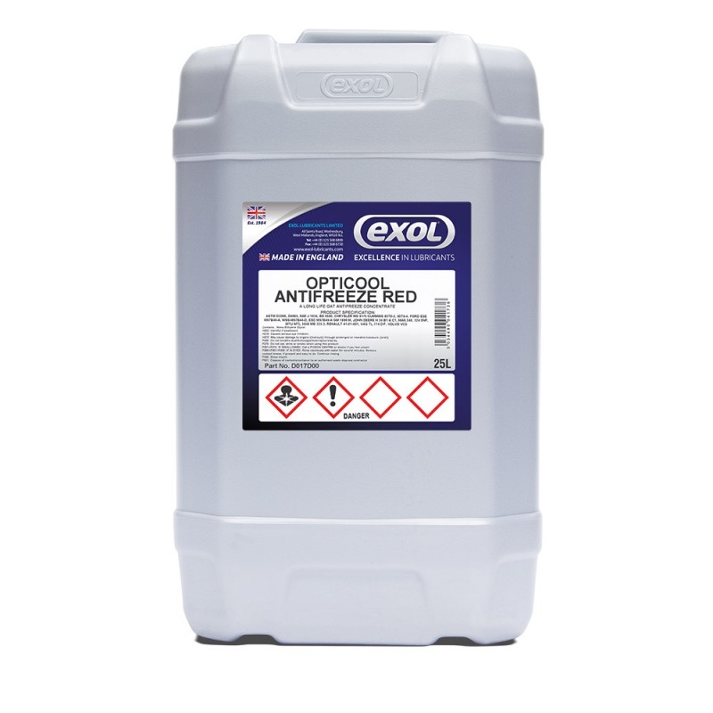 Opticool 紅色水箱精是一種以乙二醇為基礎的引擎冷卻液濃縮液,採用有機酸抑制劑技術 (OAT),不含亞硝酸鹽、胺、磷酸鹽、硼酸鹽和矽酸鹽。 本產品符合 BTC 分類 4E 類標準。車隊試驗表明